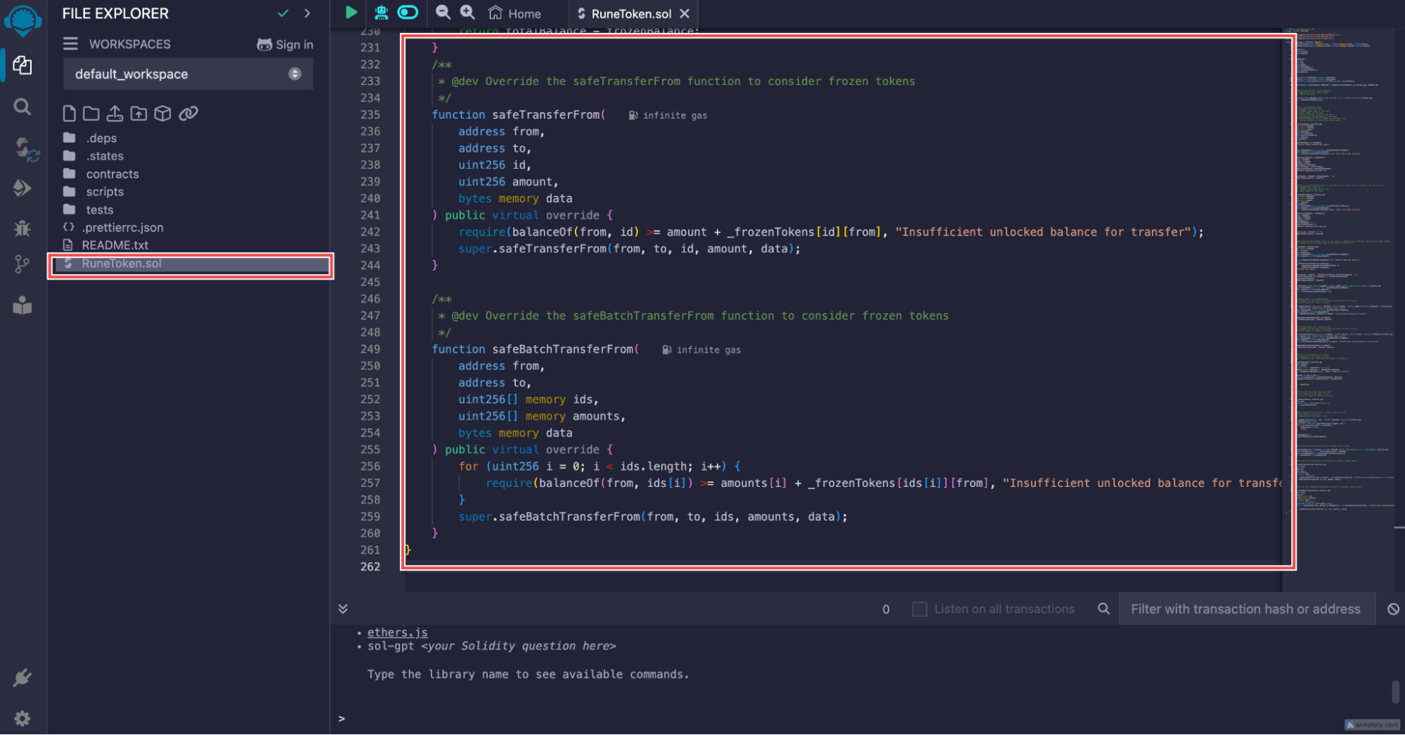 RuneToken.solfile and copy the entire smart contract code. - Paste the copied code into the newly created